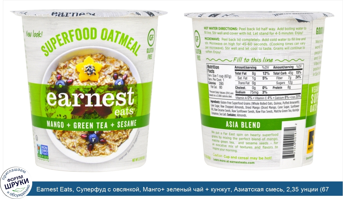 Друзья, если у вас есть отзыв/дополнение/комментарий/вопрос относительно Earnest Eats, Суперфуд с овсянкой, Манго+ зеленый чай + кунжут, Азиатская смесь, 2,35 унции (67 г) - напишите его ответом в эту тему (это будет полезно всему сообществу в целом и вам в отдельности).