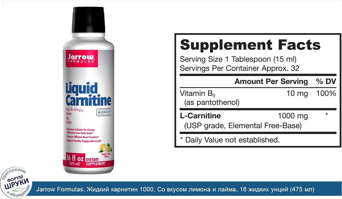 ru Jarrow Formulas, Жидкий карнитин 1000, Со вкусом лимона и лайма, 16 жидких унций (475 мл)