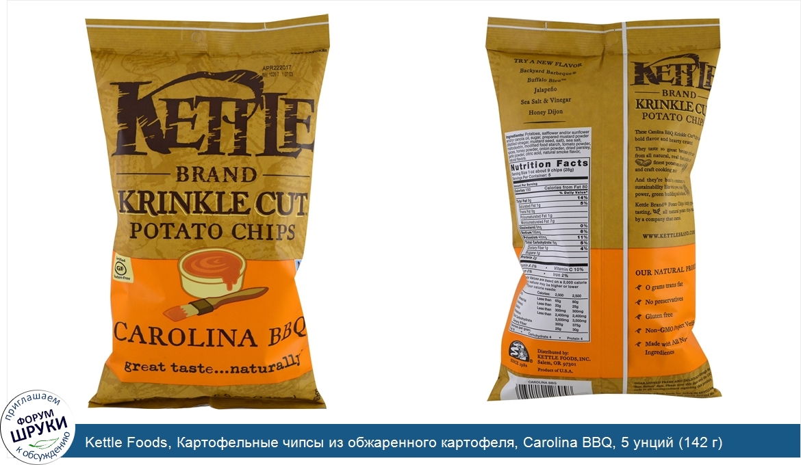 Друзья, если у вас есть отзыв/дополнение/комментарий/вопрос относительно Kettle Foods, Картофельные чипсы из обжаренного картофеля, Carolina BBQ, 5 унций (142 г) - напишите его ответом в эту тему (это будет полезно всему сообществу в целом и вам в отдельности).