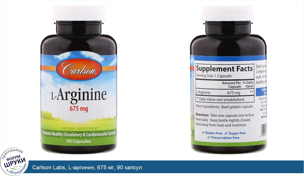 ru Carlson Labs, L-аргинин, 675 мг, 90 капсул