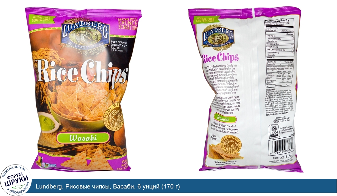 Друзья, если у вас есть отзыв/дополнение/комментарий/вопрос относительно Lundberg, Рисовые чипсы, Васаби, 6 унций (170 г) - напишите его ответом в эту тему (это будет полезно всему сообществу в целом и вам в отдельности).