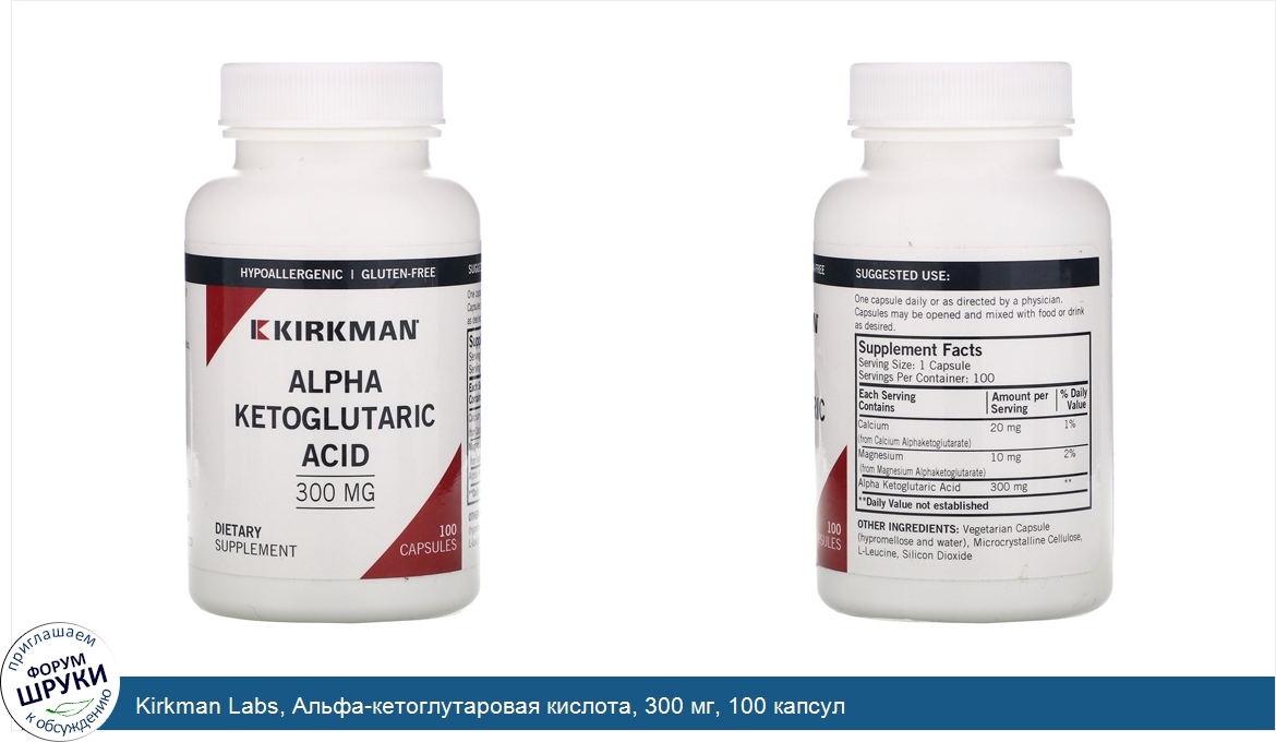 Друзья, если у вас есть отзыв/дополнение/комментарий/вопрос относительно Kirkman Labs, Альфа-кетоглутаровая кислота, 300 мг, 100 капсул - напишите его ответом в эту тему (это будет полезно всему сообществу в целом и вам в отдельности).