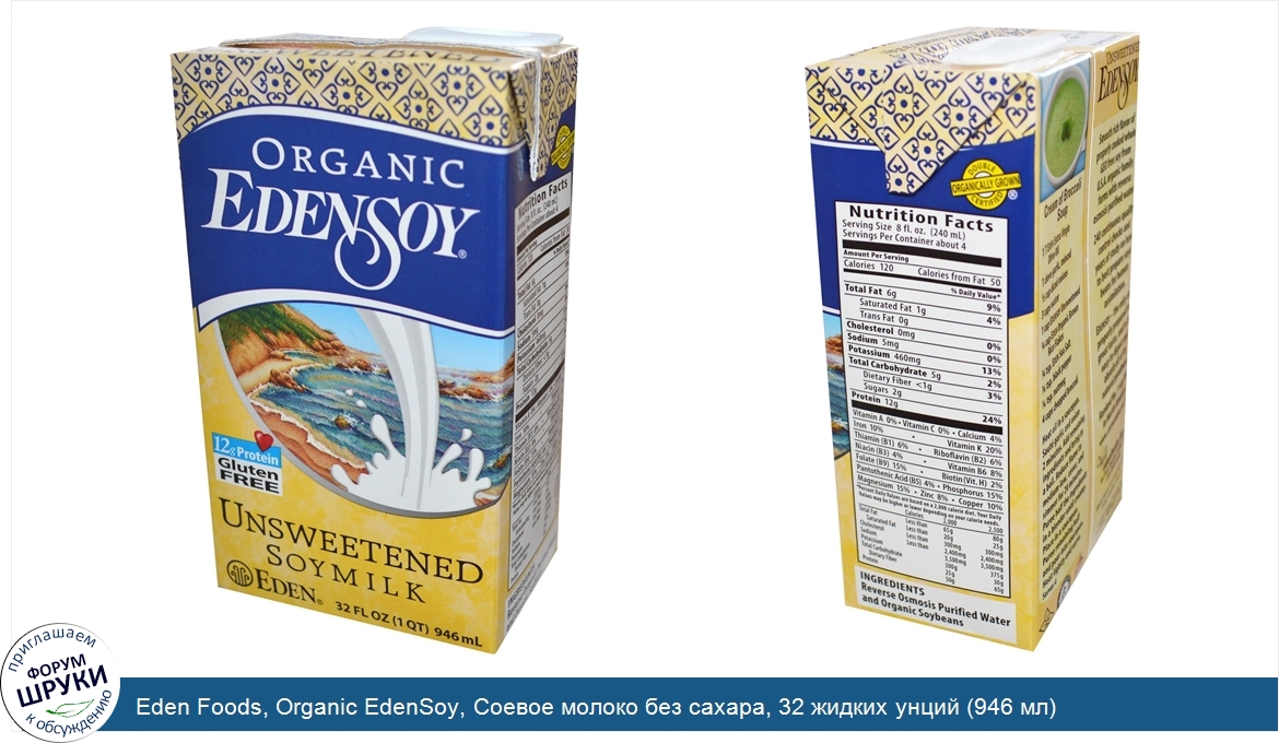 Друзья, если у вас есть отзыв/дополнение/комментарий/вопрос относительно Eden Foods, Organic EdenSoy, Соевое молоко без сахара, 32 жидких унций (946 мл) - напишите его ответом в эту тему (это будет полезно всему сообществу в целом и вам в отдельности).