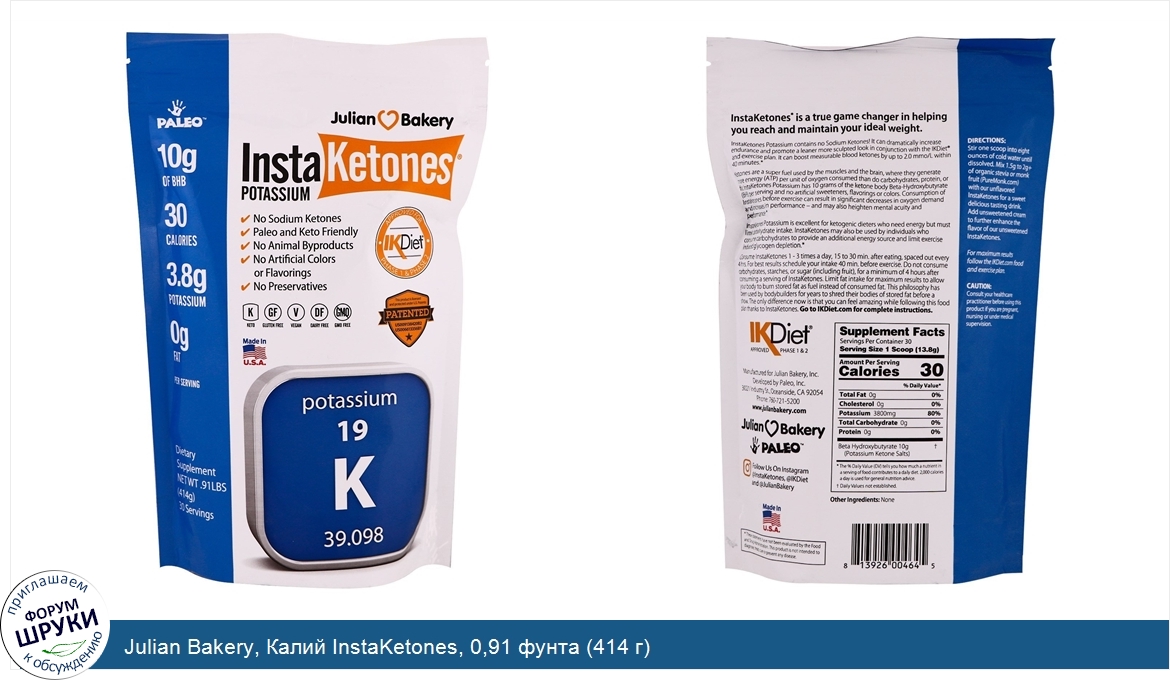 Друзья, если у вас есть отзыв/дополнение/комментарий/вопрос относительно Julian Bakery, Калий InstaKetones, 0,91 фунта (414 г) - напишите его ответом в эту тему (это будет полезно всему сообществу в целом и вам в отдельности).