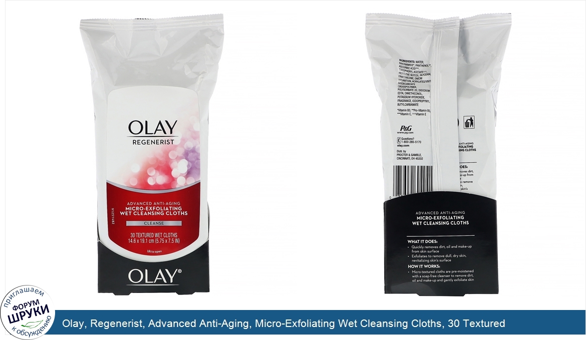 Друзья, если у вас есть отзыв/дополнение/комментарий/вопрос относительно Olay, Regenerist, Advanced Anti-Aging, Micro-Exfoliating Wet Cleansing Cloths, 30 Textured Wet Cloths - напишите его ответом в эту тему (это будет полезно всему сообществу в целом и вам в отдельности).