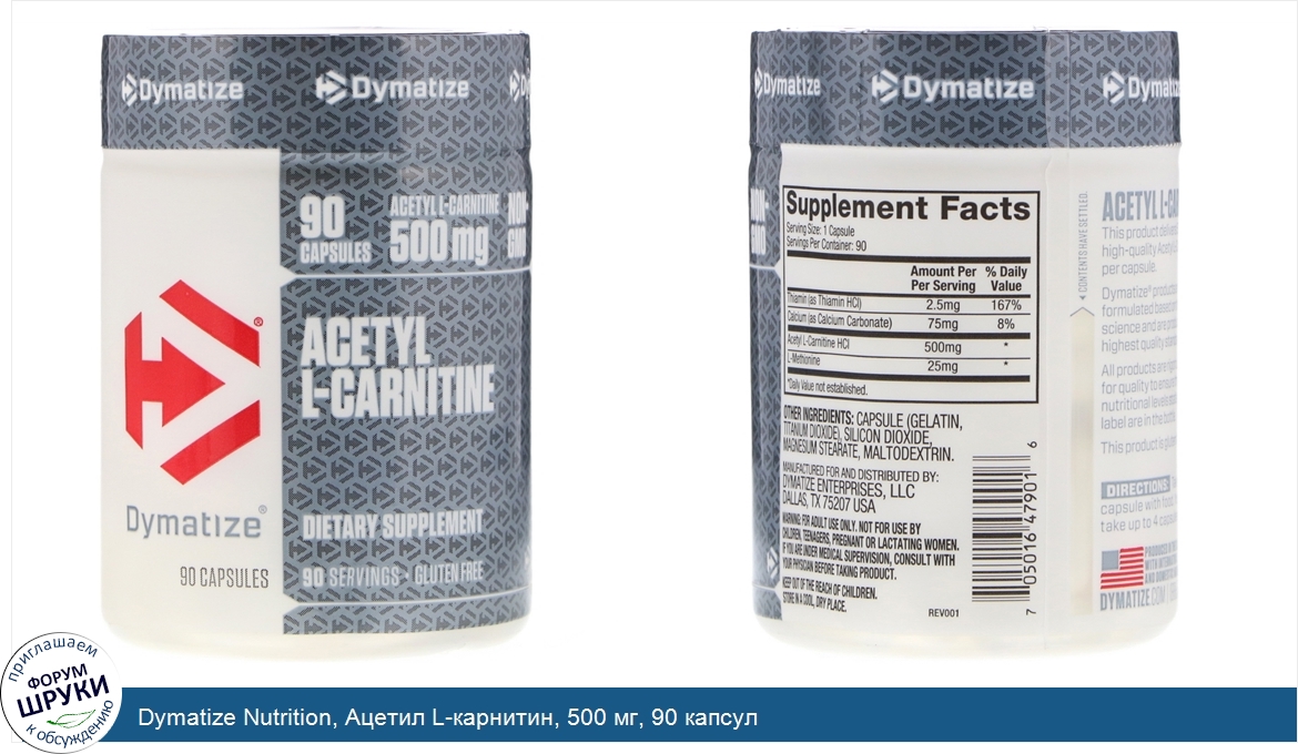 Не содержит ГМО. Пищевая добавка. 90 порций. Не содержит глютена. Употребляйте Dymatize. Ацетил-L-карнитин. Одна капсула содержит 500 мг высококачественного ацетил-L-карнитина. Продукты Dymatize разрабатываются н...