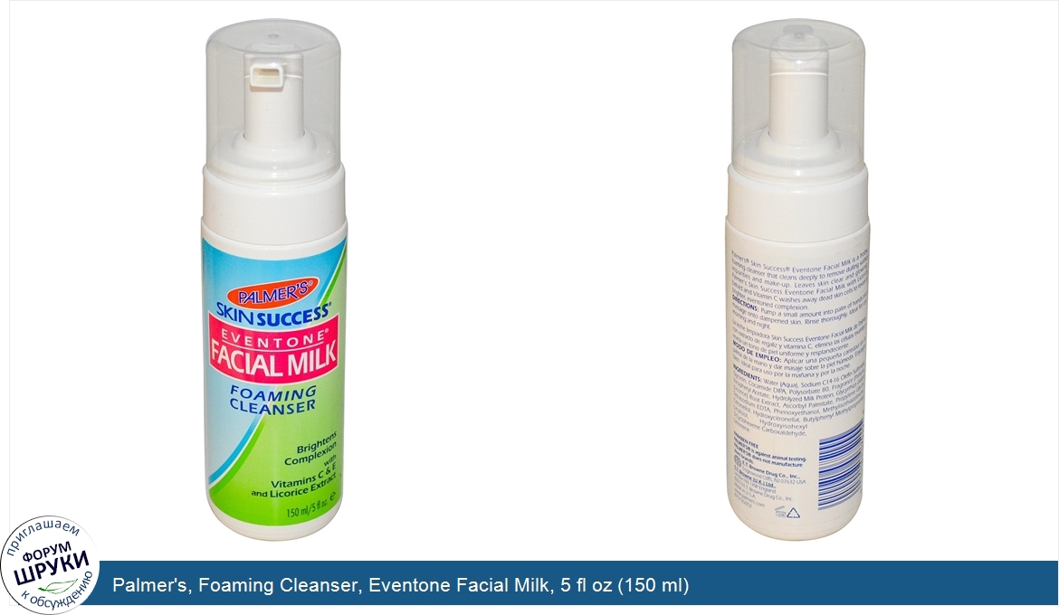 Друзья, если у вас есть отзыв/дополнение/комментарий/вопрос относительно Palmer's, Foaming Cleanser, Eventone Facial Milk, 5 fl oz (150 ml) - напишите его ответом в эту тему (это будет полезно всему сообществу в целом и вам в отдельности).