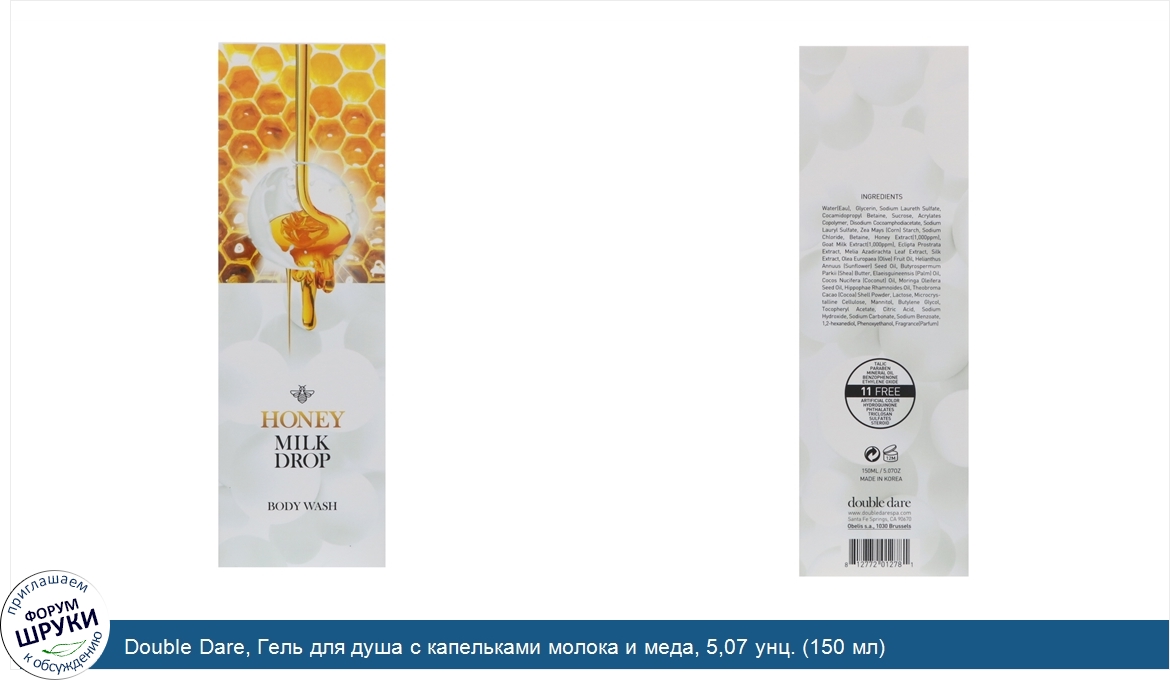 Друзья, если у вас есть отзыв/дополнение/комментарий/вопрос относительно Double Dare, Гель для душа с капельками молока и меда, 5,07 унц. (150 мл) - напишите его ответом в эту тему (это будет полезно всему сообществу в целом и вам в отдельности).