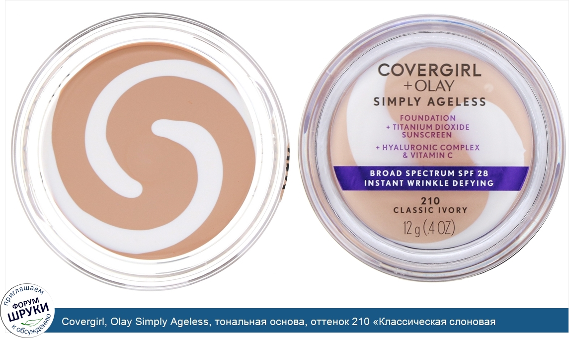 Covergirl, Olay Simply Ageless, тональная основа, оттенок 210 «Классическая слоновая кость», 12г (0,4унции)