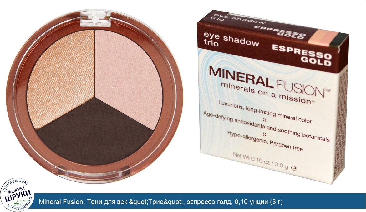 Друзья, если у вас есть отзыв/дополнение/комментарий/вопрос относительно Mineral Fusion, Тени для век "Трио", эспрессо голд, 0,10 унции (3 г) - напишите его ответом в эту тему (это будет полезно всему сообществу в целом и вам в отдельности).