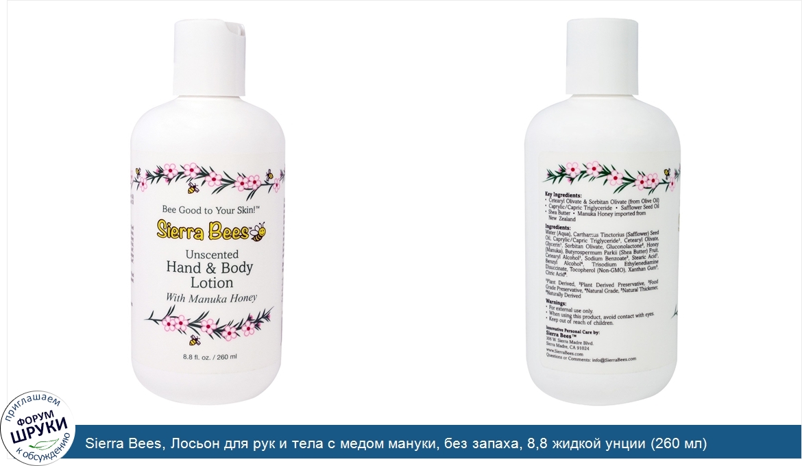 Друзья, если у вас есть отзыв/дополнение/комментарий/вопрос относительно Sierra Bees, Лосьон для рук и тела с медом мануки, без запаха, 8,8 жидкой унции (260 мл) - напишите его ответом в эту тему (это будет полезно всему сообществу в целом и вам в отдельности).