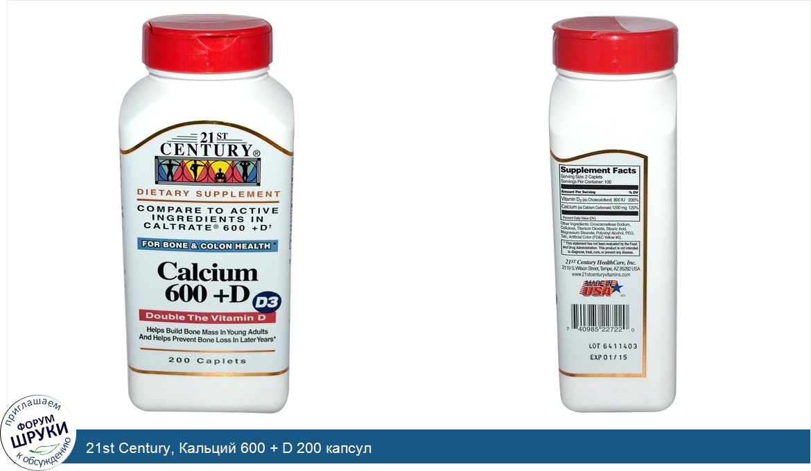 Друзья, если у вас есть отзыв/дополнение/комментарий/вопрос относительно 21st Century, Кальций 600 + D 200 капсул - напишите его ответом в эту тему (это будет полезно всему сообществу в целом и вам в отдельности).