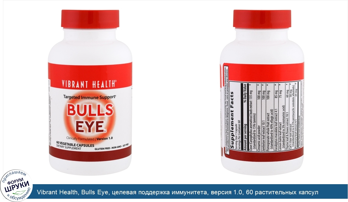 Друзья, если у вас есть отзыв/дополнение/комментарий/вопрос относительно Vibrant Health, Bulls Eye, целевая поддержка иммунитета, версия 1.0, 60 растительных капсул - напишите его ответом в эту тему (это будет полезно всему сообществу в целом и вам в отдельности).