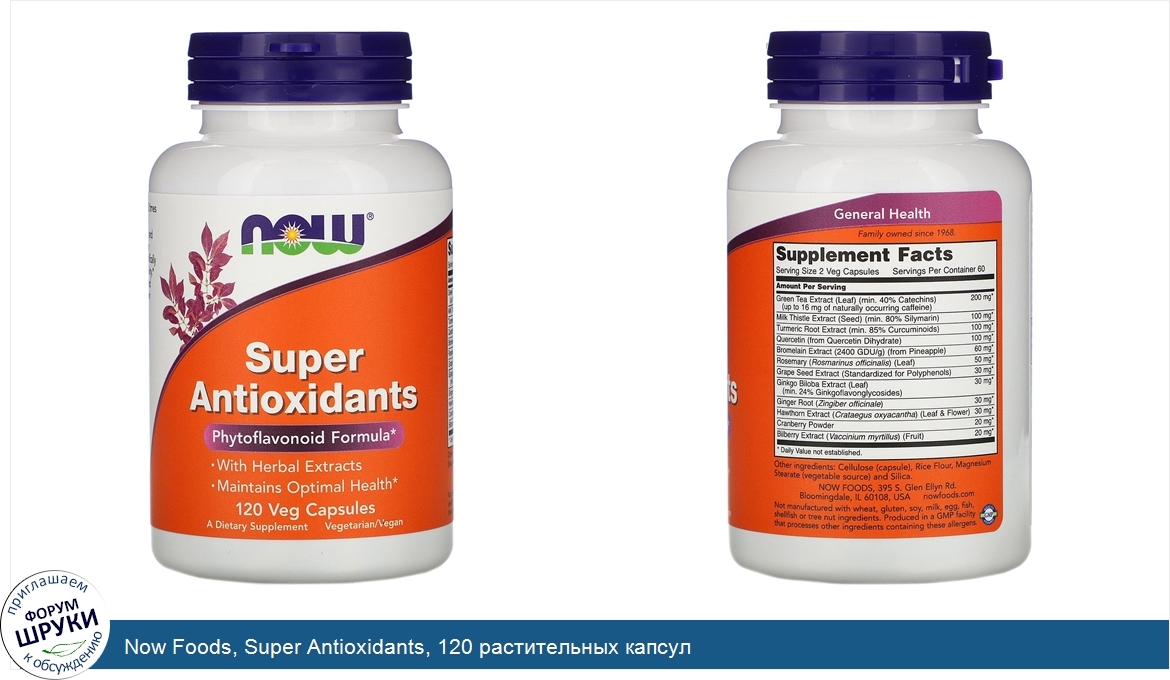 ru Now Foods, Super Antioxidants, 120 растительных капсул