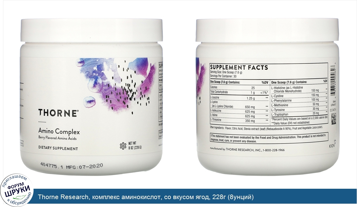Друзья, если у вас есть отзыв/дополнение/комментарий/вопрос относительно Thorne Research, комплекс аминокислот, со вкусом ягод, 228г (8унций) - напишите его ответом в эту тему (это будет полезно всему сообществу в целом и вам в отдельности).
