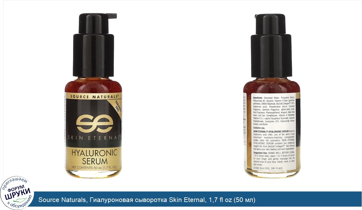 Друзья, если у вас есть отзыв/дополнение/комментарий/вопрос относительно Source Naturals, Гиалуроновая сыворотка Skin Eternal, 1,7 fl oz (50 мл) - напишите его ответом в эту тему (это будет полезно всему сообществу в целом и вам в отдельности).
