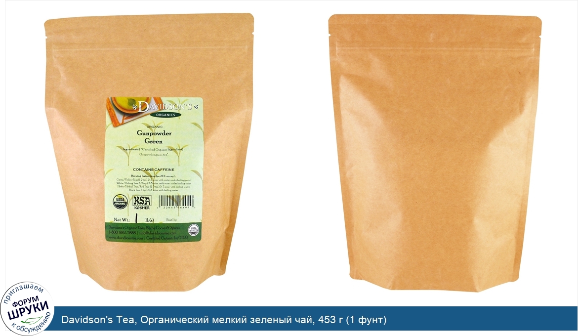 ru Davidson's Tea, Органический мелкий зеленый чай, 453 г (1 фунт)