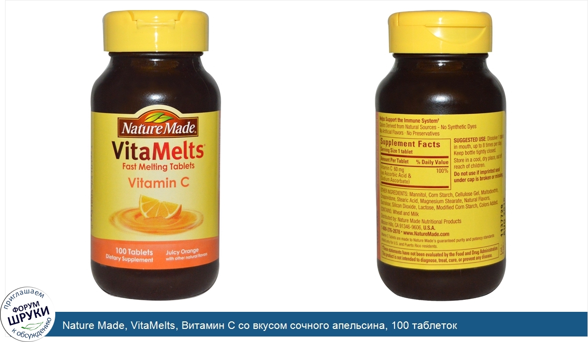 Друзья, если у вас есть отзыв/дополнение/комментарий/вопрос относительно Nature Made, VitaMelts, Витамин С со вкусом сочного апельсина, 100 таблеток - напишите его ответом в эту тему (это будет полезно всему сообществу в целом и вам в отдельности).
