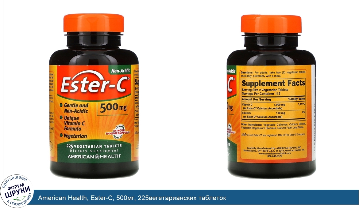 American Health, Ester-C, 500мг, 225вегетарианских таблеток