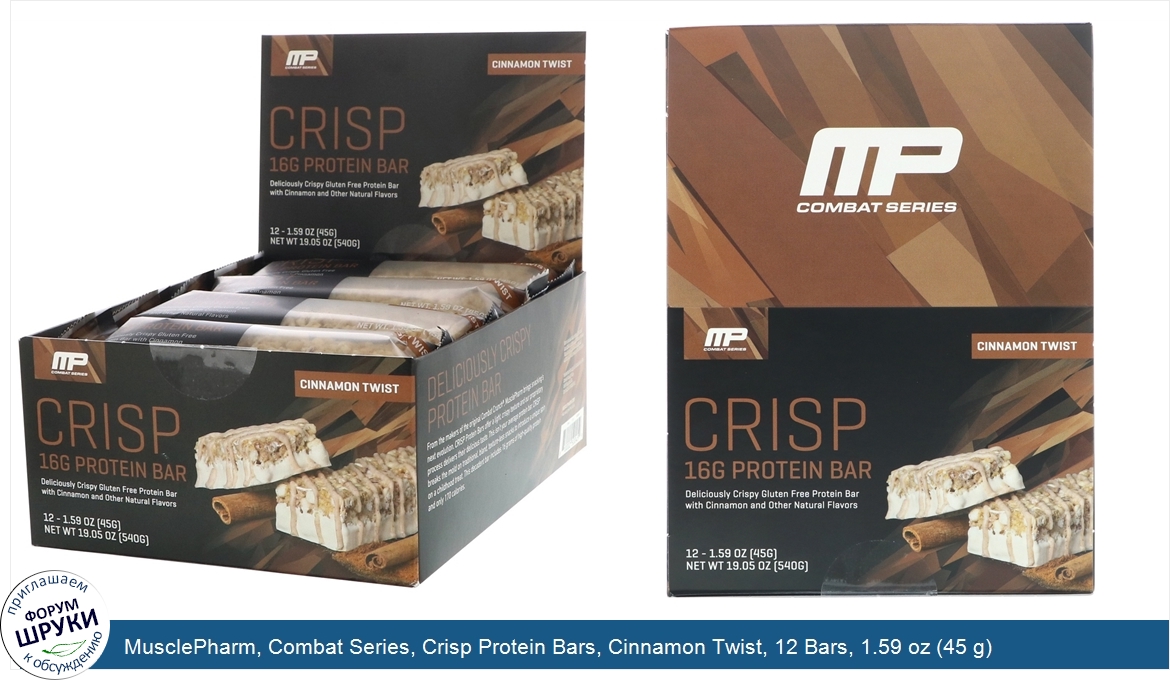 Друзья, если у вас есть отзыв/дополнение/комментарий/вопрос относительно MusclePharm, Combat Series, Crisp Protein Bars, Cinnamon Twist, 12 Bars, 1.59 oz (45 g) Each - напишите его ответом в эту тему (это будет полезно всему сообществу в целом и вам в отдельности).
