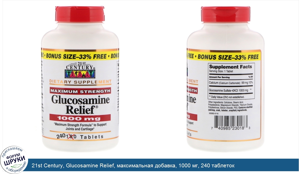 Друзья, если у вас есть отзыв/дополнение/комментарий/вопрос относительно 21st Century, Glucosamine Relief, максимальная добавка, 1000 мг, 240 таблеток - напишите его ответом в эту тему (это будет полезно всему сообществу в целом и вам в отдельности).
