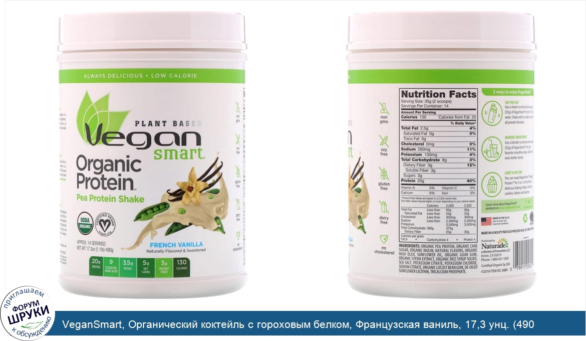 Друзья, если у вас есть отзыв/дополнение/комментарий/вопрос относительно VeganSmart, Органический коктейль с гороховым белком, Французская ваниль, 17,3 унц. (490 г) - напишите его ответом в эту тему (это будет полезно всему сообществу в целом и вам в отдельности).