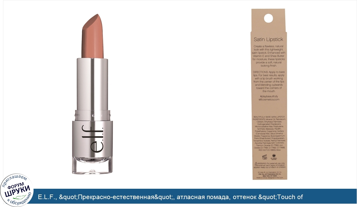 Друзья, если у вас есть отзыв/дополнение/комментарий/вопрос относительно E.L.F., "Прекрасно-естественная", атласная помада, оттенок "Touch of Nude" ("касание естественности"