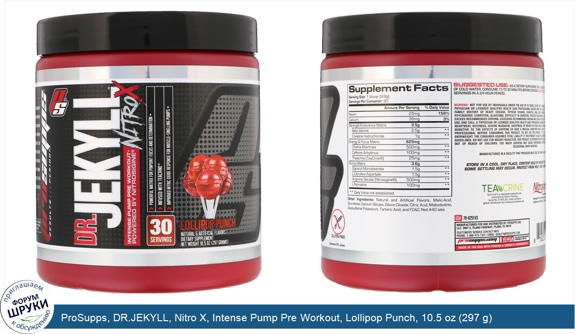 Друзья, если у вас есть отзыв/дополнение/комментарий/вопрос относительно ProSupps, DR.JEKYLL, Nitro X, Intense Pump Pre Workout, Lollipop Punch, 10.5 oz (297 g) - напишите его ответом в эту тему (это будет полезно всему сообществу в целом и вам в отдельности).