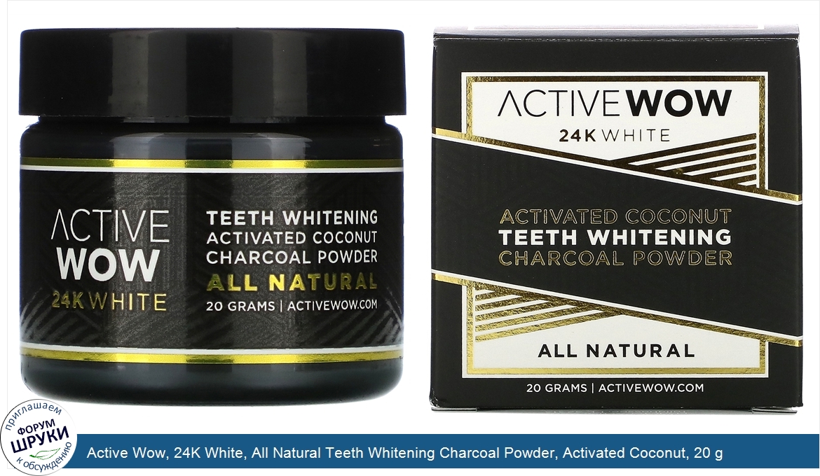 Active Wow, 24K White, All Natural Teeth Whitening Charcoal Powder, Activated Coconut, 20 g