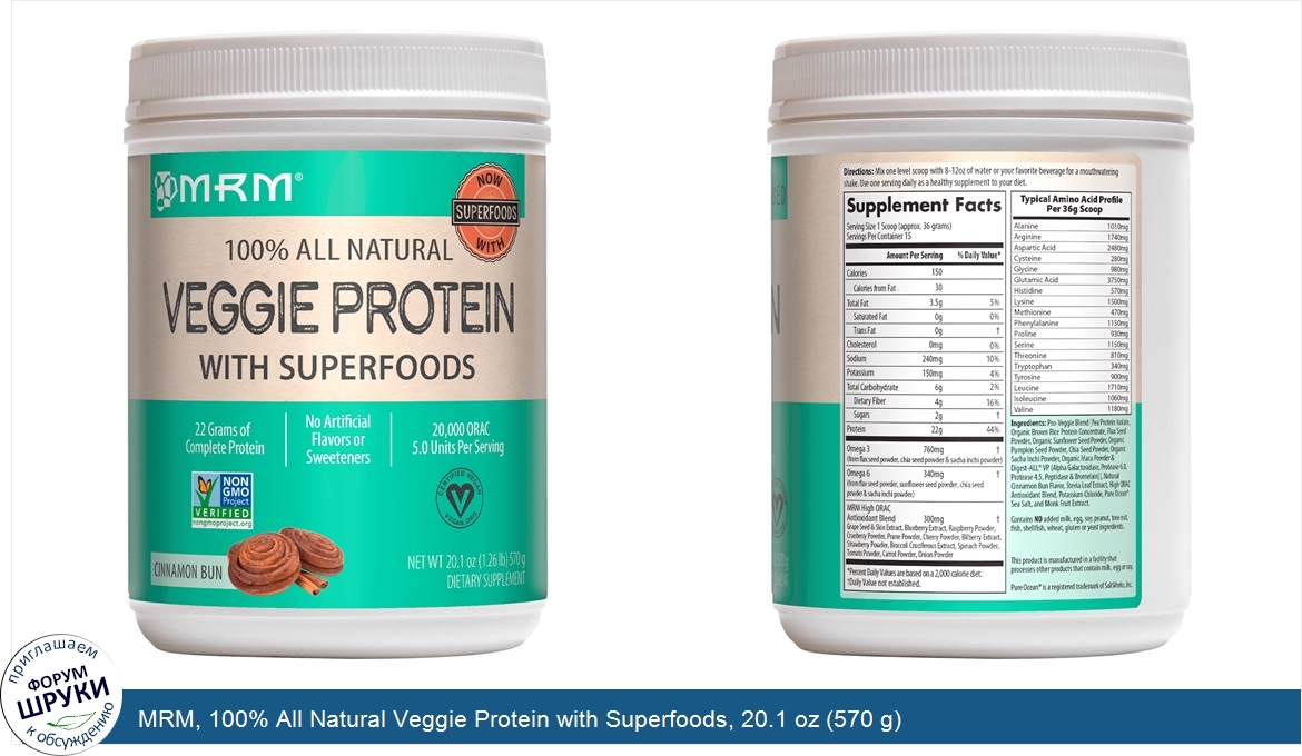 Друзья, если у вас есть отзыв/дополнение/комментарий/вопрос относительно MRM, 100% All Natural Veggie Protein with Superfoods, 20.1 oz (570 g) - напишите его ответом в эту тему (это будет полезно всему сообществу в целом и вам в отдельности).