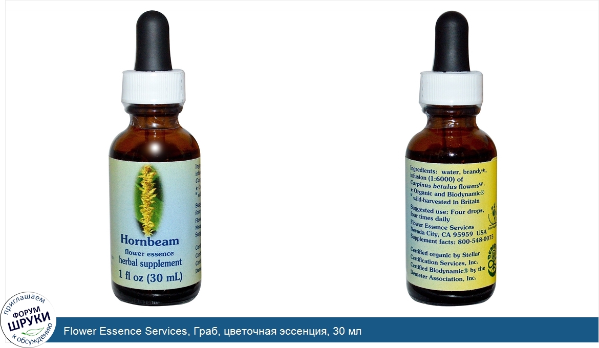 Друзья, если у вас есть отзыв/дополнение/комментарий/вопрос относительно Flower Essence Services, Граб, цветочная эссенция, 30 мл - напишите его ответом в эту тему (это будет полезно всему сообществу в целом и вам в отдельности).