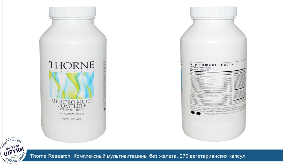 Друзья, если у вас есть отзыв/дополнение/комментарий/вопрос относительно Thorne Research, Комплексный мультивитамины без железа, 270 вегетарианских капсул - напишите его ответом в эту тему (это будет полезно всему сообществу в целом и вам в отдельности).