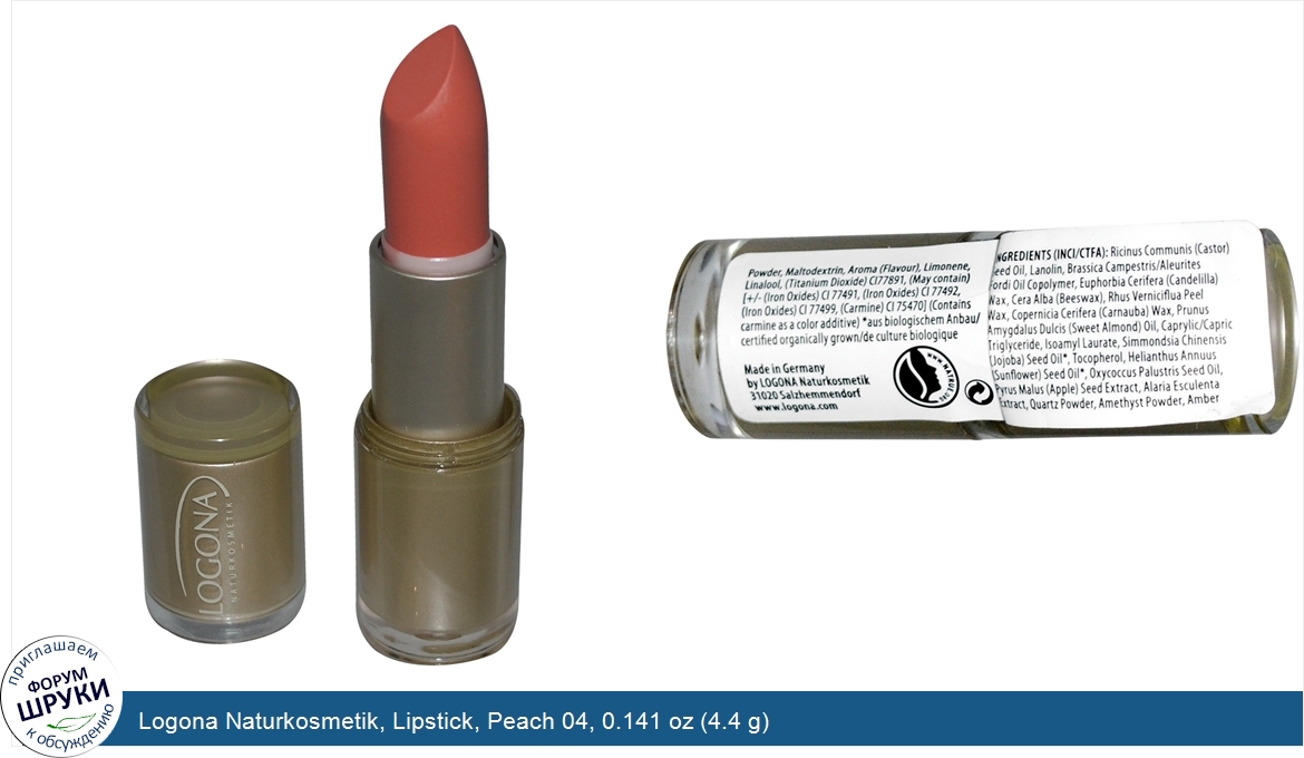 Друзья, если у вас есть отзыв/дополнение/комментарий/вопрос относительно Logona Naturkosmetik, Lipstick, Peach 04, 0.141 oz (4.4 g) - напишите его ответом в эту тему (это будет полезно всему сообществу в целом и вам в отдельности).