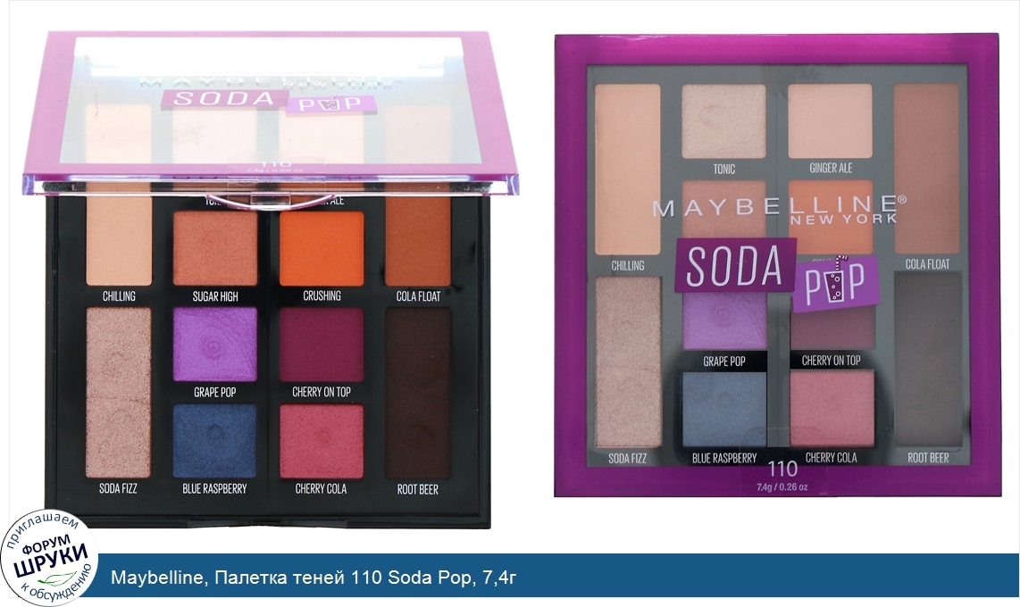 Друзья, если у вас есть отзыв/дополнение/комментарий/вопрос относительно Maybelline, Палетка теней 110 Soda Pop, 7,4г - напишите его ответом в эту тему (это будет полезно всему сообществу в целом и вам в отдельности).