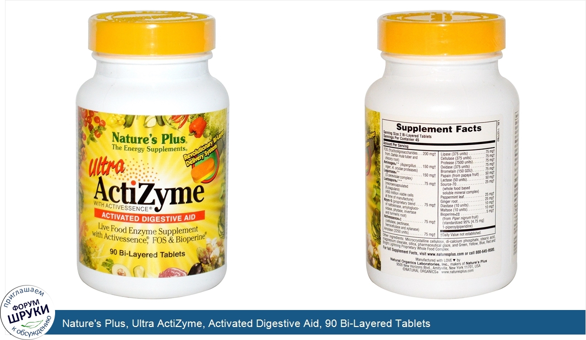Друзья, если у вас есть отзыв/дополнение/комментарий/вопрос относительно Nature's Plus, Ultra ActiZyme, Activated Digestive Aid, 90 Bi-Layered Tablets - напишите его ответом в эту тему (это будет полезно всему сообществу в целом и вам в отдельности).
