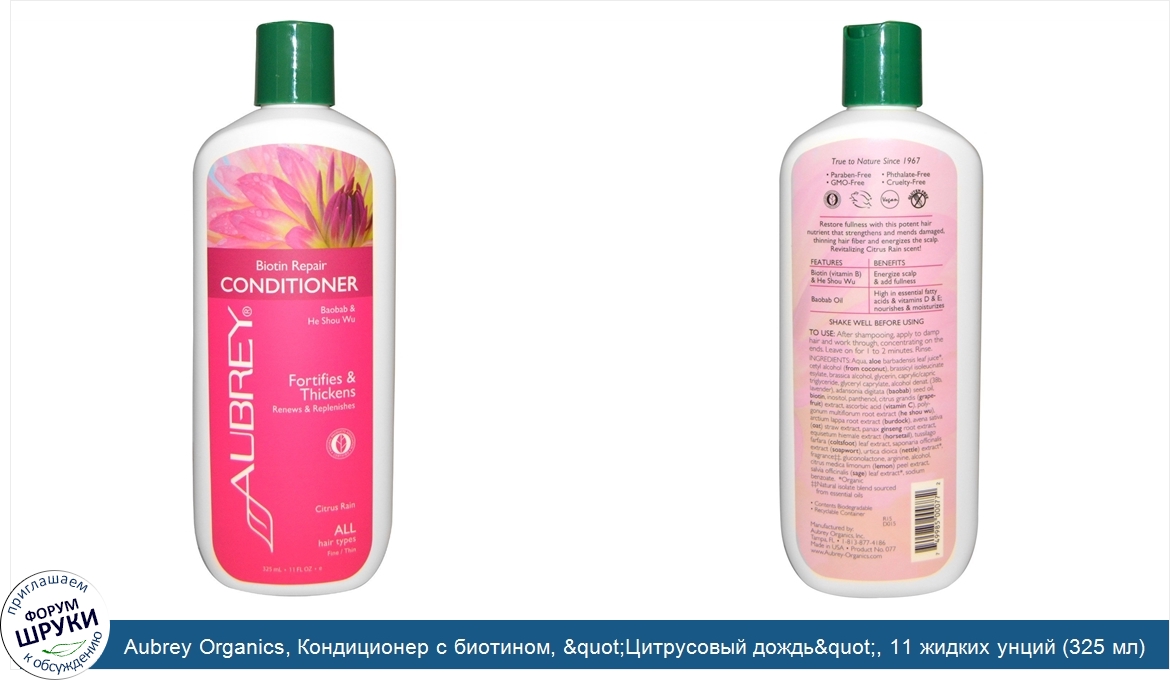 Друзья, если у вас есть отзыв/дополнение/комментарий/вопрос относительно Aubrey Organics, Кондиционер с биотином, "Цитрусовый дождь", 11 жидких унций (325 мл) - напишите его ответом в эту тему (это будет полезно всему сообществу в целом и вам в отдельности).