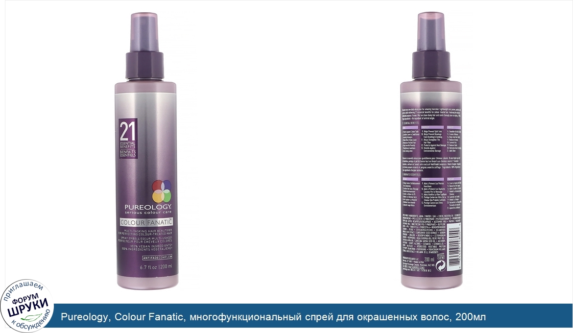 Друзья, если у вас есть отзыв/дополнение/комментарий/вопрос относительно Pureology, Colour Fanatic, многофункциональный спрей для окрашенных волос, 200мл - напишите его ответом в эту тему (это будет полезно всему сообществу в целом и вам в отдельности).
