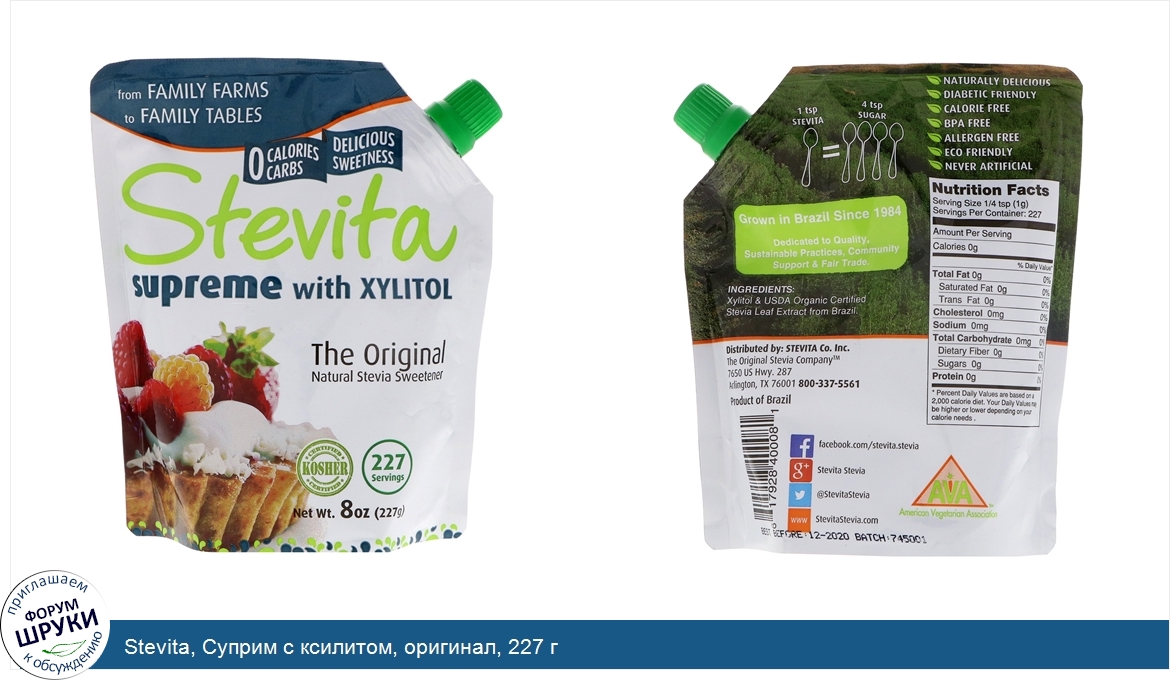 Stevita, Суприм с ксилитом, оригинал, 227 г