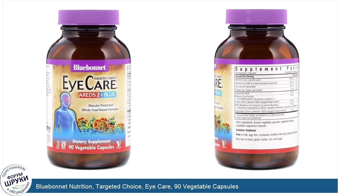 AREDS 2 + Blue. Macular Protection. Whole Food-Based Formula. Dietary Supplement. Kosher Parve. Gluten Free. Vegan. LuteMax® 2020 - Lutein Zeaxanthin. Bluebonnet's Targeted Choice EyeCare™ Capsules are specially ...