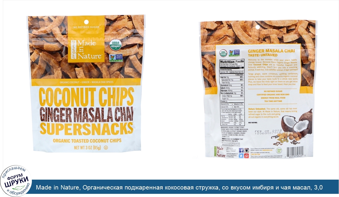 Друзья, если у вас есть отзыв/дополнение/комментарий/вопрос относительно Made in Nature, Органическая поджаренная кокосовая стружка, со вкусом имбиря и чая масал, 3,0 унции (85 г) - напишите его ответом в эту тему (это будет полезно всему сообществу в целом и вам в отдельности).