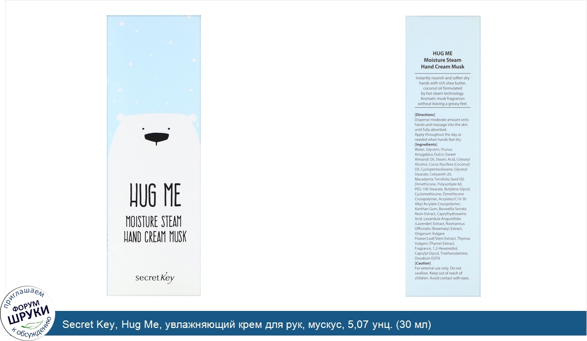 Друзья, если у вас есть отзыв/дополнение/комментарий/вопрос относительно Secret Key, Hug Me, увлажняющий крем для рук, мускус, 5,07 унц. (30 мл) - напишите его ответом в эту тему (это будет полезно всему сообществу в целом и вам в отдельности).