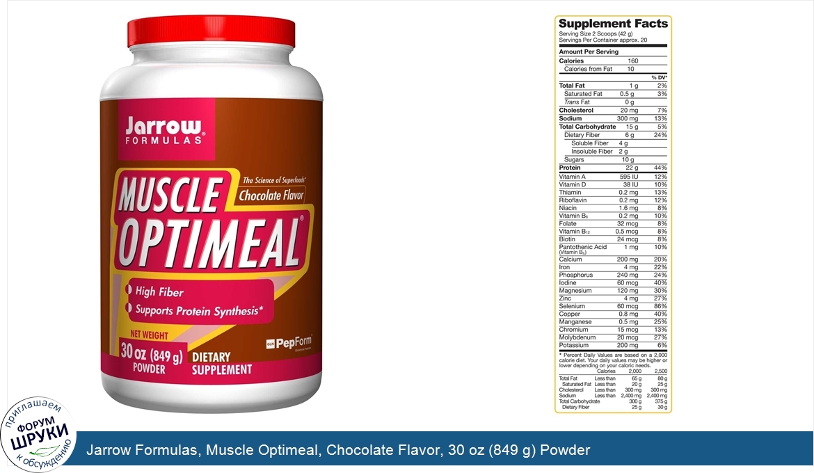 Друзья, если у вас есть отзыв/дополнение/комментарий/вопрос относительно Jarrow Formulas, Muscle Optimeal, Chocolate Flavor, 30 oz (849 g) Powder - напишите его ответом в эту тему (это будет полезно всему сообществу в целом и вам в отдельности).