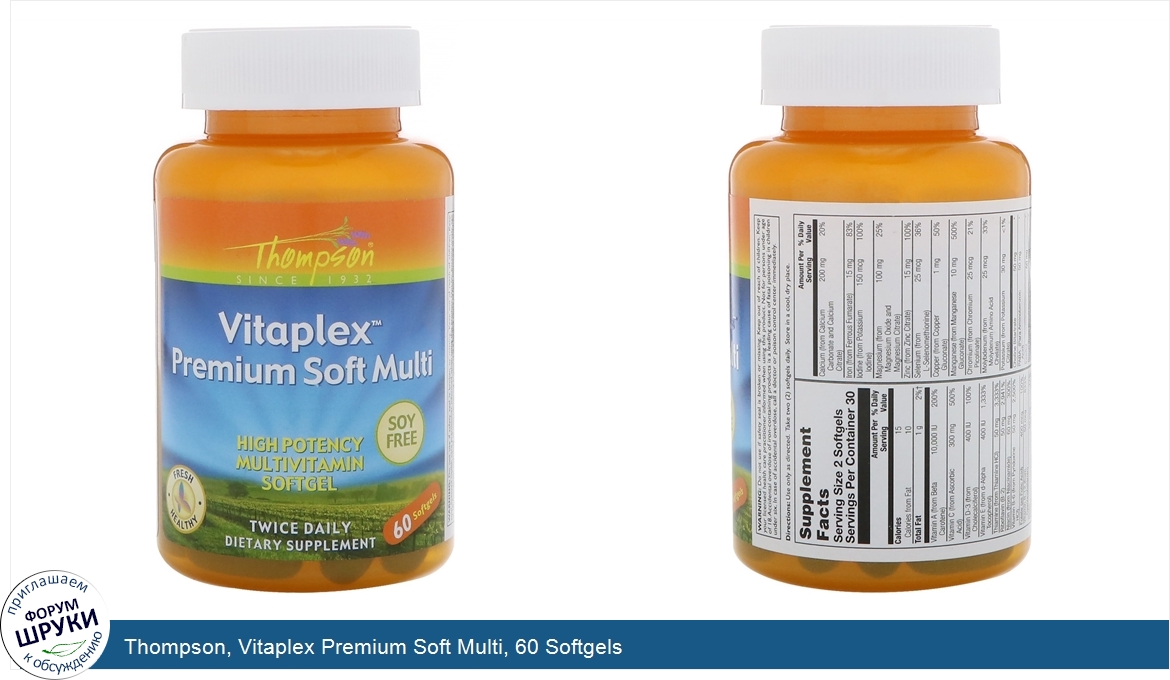 Друзья, если у вас есть отзыв/дополнение/комментарий/вопрос относительно Thompson, Vitaplex Premium Soft Multi, 60 Softgels - напишите его ответом в эту тему (это будет полезно всему сообществу в целом и вам в отдельности).