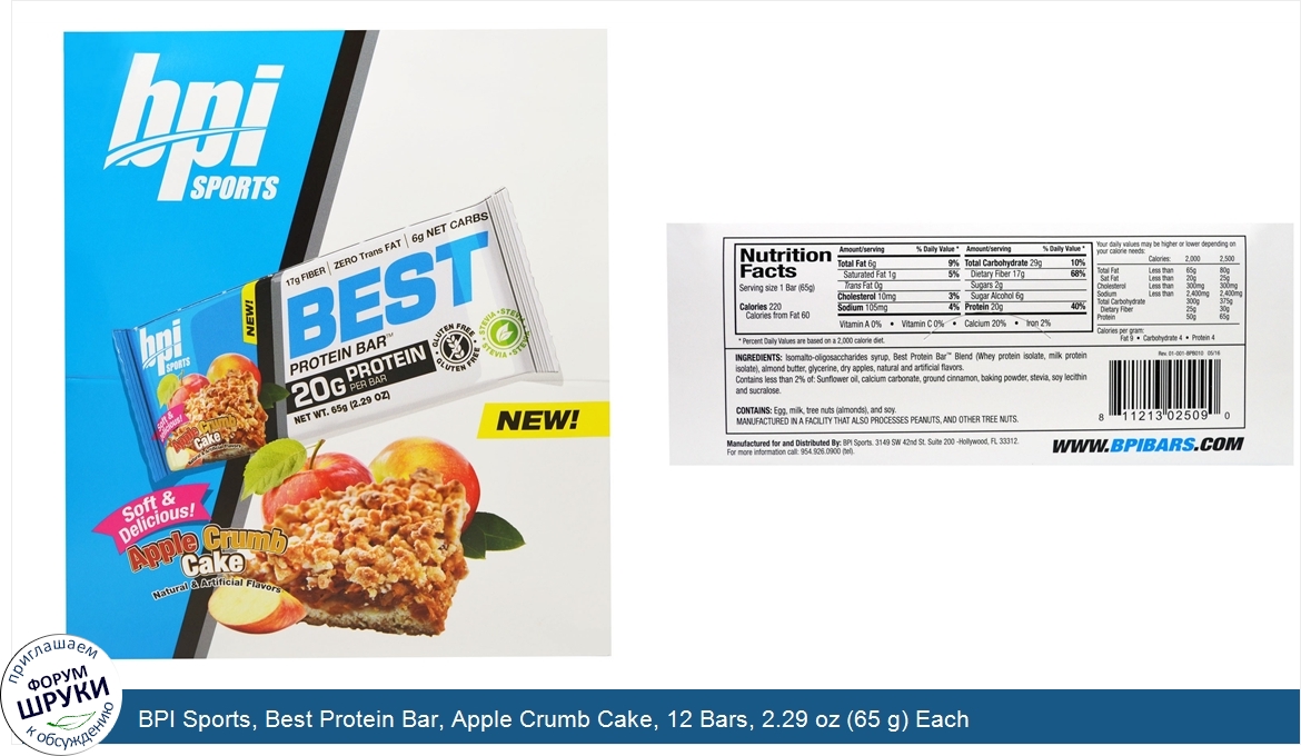 Друзья, если у вас есть отзыв/дополнение/комментарий/вопрос относительно BPI Sports, Best Protein Bar, Apple Crumb Cake, 12 Bars, 2.29 oz (65 g) Each - напишите его ответом в эту тему (это будет полезно всему сообществу в целом и вам в отдельности).