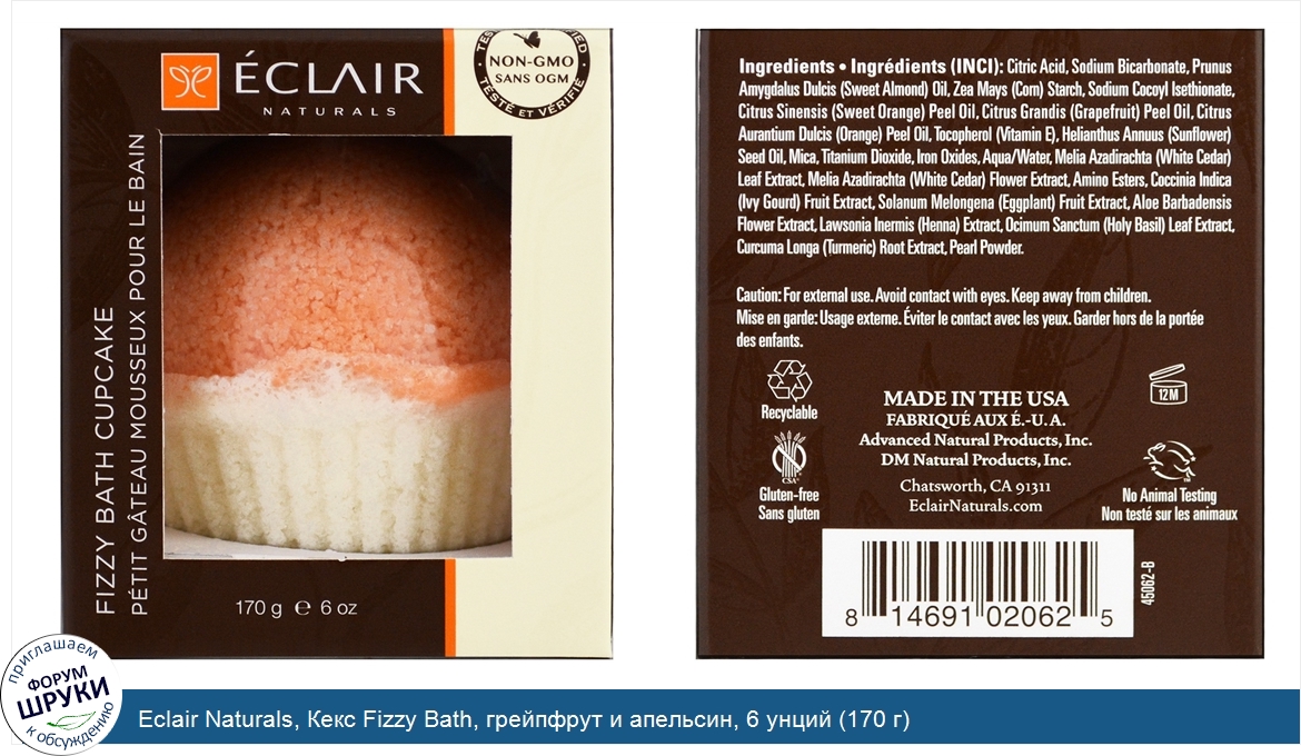 Друзья, если у вас есть отзыв/дополнение/комментарий/вопрос относительно Eclair Naturals, Кекс Fizzy Bath, грейпфрут и апельсин, 6 унций (170 г) - напишите его ответом в эту тему (это будет полезно всему сообществу в целом и вам в отдельности).