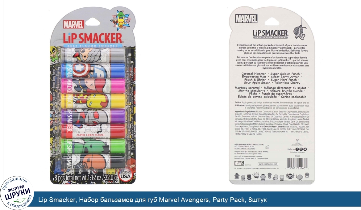 Друзья, если у вас есть отзыв/дополнение/комментарий/вопрос относительно Lip Smacker, Набор бальзамов для губ Marvel Avengers, Party Pack, 8штук - напишите его ответом в эту тему (это будет полезно всему сообществу в целом и вам в отдельности).