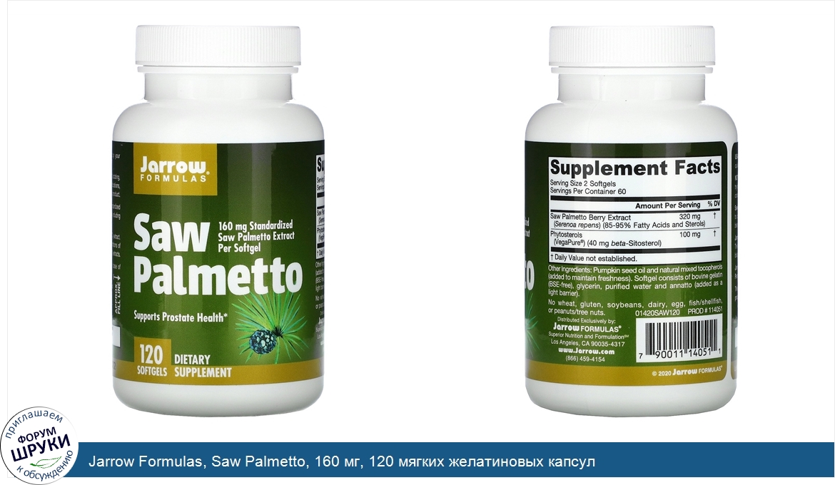 Jarrow Formulas, Saw Palmetto, 160 мг, 120 мягких желатиновых капсул