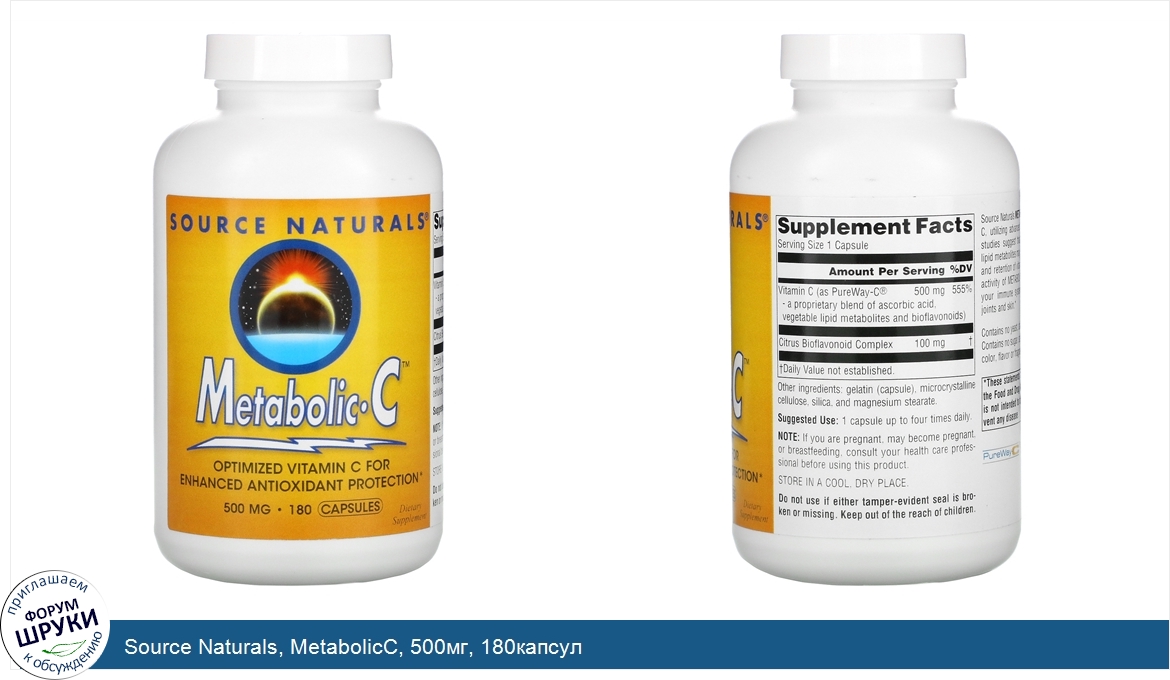 Source Naturals, MetabolicC, 500мг, 180капсул