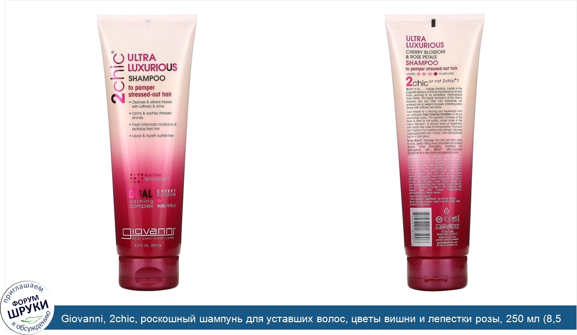 Друзья, если у вас есть отзыв/дополнение/комментарий/вопрос относительно Giovanni, 2chic, роскошный шампунь для уставших волос, цветы вишни и лепестки розы, 250 мл (8,5 жидких унций) - напишите его ответом в эту тему (это будет полезно всему сообществу в целом и вам в отдельности).