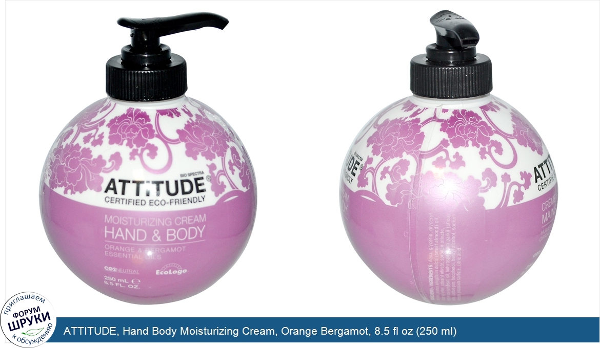 Друзья, если у вас есть отзыв/дополнение/комментарий/вопрос относительно ATTITUDE, Hand Body Moisturizing Cream, Orange Bergamot, 8.5 fl oz (250 ml) - напишите его ответом в эту тему (это будет полезно всему сообществу в целом и вам в отдельности).